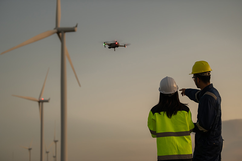 Inspekcje techniczne obiektów przemysłowych np.: sprawdzenie dachu, elewacji, linii energetycznych, budów, turbin wiatrowych, mostów, instalacji fotowoltaicznych, wież komórkowych, TV i innych trudno dostępnych miejsc. Dzięki używanym teleobiektywom nie umknie nam żaden szczegół.